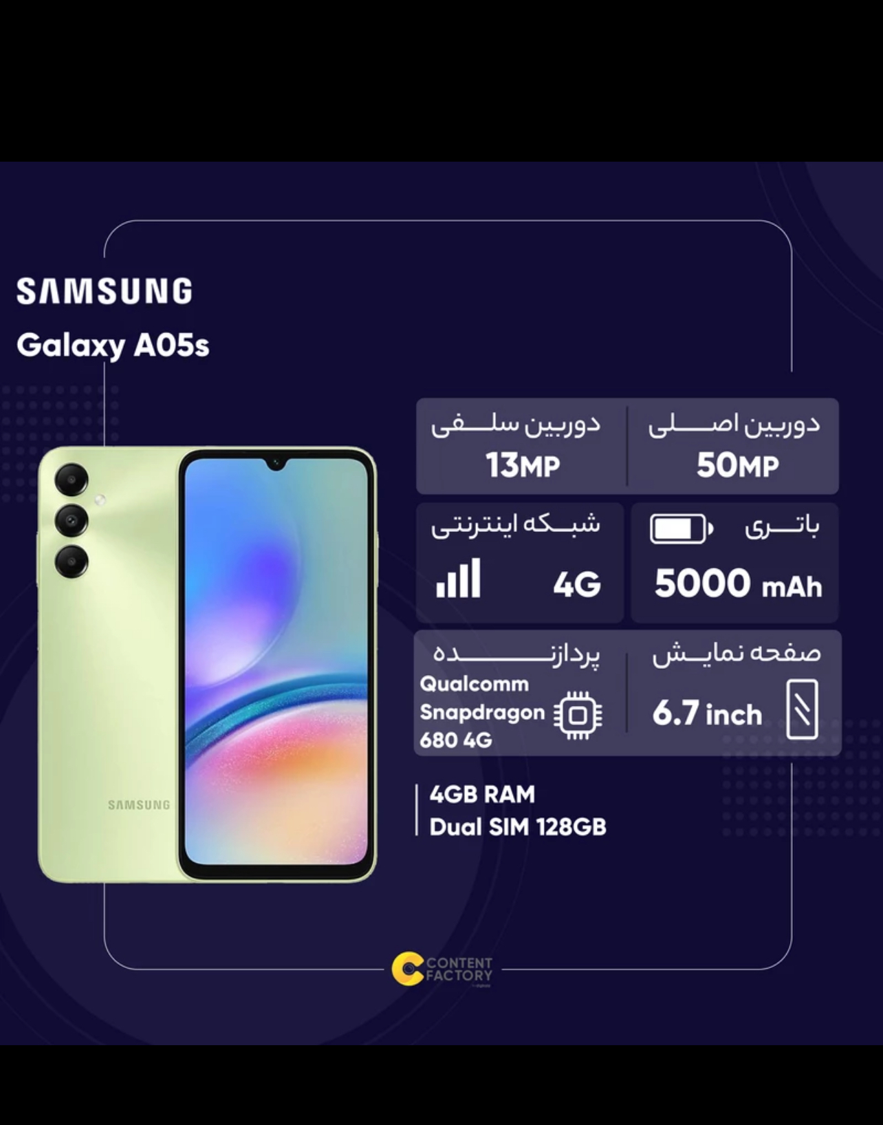 گوشی موبایل سامسونگ مدل Galaxy A05s دو سیم کارت ظرفیت 128 گیگابایت و رم 4 گیگابایت